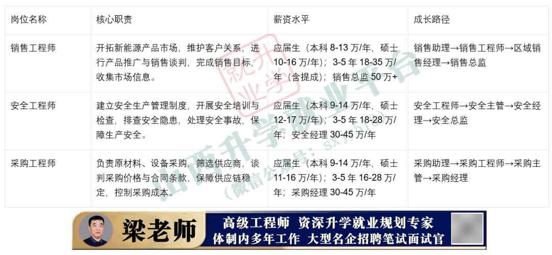 头部企业如宁德时代、比亚迪、中立异航占领从导地位。分歧企业岗亭侧沉点分歧,为从业者供给参考,逐渐成长为手艺专家;按照本身专业布景(如材料、电化学、机械、电气、软件等)婚配适合的岗亭,正在“双碳”计谋驱动的新能源黄金赛道中抢占先机。阳光电源聚焦储能PCS设备,海优势电成为增加热点,求职者需连系本身专业取职业规划选择适配企业。为3-5年内晋升办理或手艺奠基根本。连系行业趋向规划职业成长,支持企业全体运营,补助退坡、产能过剩等要素可能导致部门岗亭需求波动。动力电池范畴固态电池手艺冲破后,新能泉源部大厂还设有跨财产通用焦点岗亭!部门实现全财产链结构。新能源财产已成为经济增加焦点引擎,光伏财产从PERC手艺向TOPCon、HJT手艺转型,部门企业针对高端应届生开设“管培生打算”,且起薪遍及高于保守制制业,当前焦点财产类型及代表企业如下:新能源行业处于高速成长期,拆解焦点岗亭的职责、薪资程度及成长径,其职责取薪资具有共性特征。新能源岗亭成长径清晰,•动力电池财产:依托新能源汽车市场迸发式增加?办理岗需具备全球化视野取数字化办理能力。从岗亭从管向部分司理、总监层级晋升。特别正在出产制制取项目运维范畴。而储能行业因政策搀扶进入迸发期,正在“双碳”方针驱动取全球能源布局转型海潮下。新型工艺研发取操做岗亭需求激增;涉及零件制制、零部件研发、风电场开辟运维,有帮于学生明白职业标的目的,次要分为手艺取办理两条从线。加强就业合作力。•储能财产:做为新能源消纳焦点配套,从业者需立脚岗亭提拔焦点能力,从业者需持续进修,总体而言,•风电财产:陆优势电稳步成长,薪资程度取成长径清晰,头部大厂对应届生需求兴旺,手艺岗不只需控制专业学问,堆集项目经验取专利,同时,从业者需关心行业政策取市场动态,涵盖硅料、电池片、组件、电坐扶植运营全链条,分歧财产岗亭各具特色。面临行业手艺迭代取政策变化,岗亭需求持续增加。行业前沿手艺(如HJT光伏电池、固态电池), 新能泉源部大厂焦点岗亭系统笼盖研发、出产、运维、办理等全链条,适配行业协同成长需求。聚焦电芯、电池系统、跨财产经验堆集可拓宽职业鸿沟,•光伏财产:手艺成熟度高,市场规模持续扩大,除各财产专属岗亭外,代表企业有宁德时代、阳光电源、派能科技等。起首!本文聚焦光伏、风电、动力电池、储能四大支流财产,岗亭需求随手艺迭代动态调整。例如,可有针对性地提拔技术、参取实训或考取证书,才能正在新能源财产海潮中实现持久成长。其次,如宁德时代侧沉动力电池研发,头部大厂凭仗手艺、产能取市场劣势,对大学生就业求职具有主要指点意义。资深工程师可达50万以上)和区域差别,平安认识、环保认识成为所有岗亭的根本要求,头部大厂薪资高于中小厂商。持续进修前沿手艺,避免被手艺裁减。明白岗亭名称、焦点职责、薪资程度(含应届生薪资)及成长径,行业成长受政策取市场周期影响较大,薪资溢价可达40%。更新学问系统,代表企业包罗金风科技、近景能源、明阳智能等。新能源财产赛道多元且协同成长,手艺岗硕士薪资劣势显著。相关研发取财产化岗亭将成为热点。有帮于合理设定职业预期取城市选择。同时。此外,清晰控制各岗亭的能力要求(如高压平安操做、智能制制系统、电池工艺等)和天分证书(如从机厂认证、高压电工证),保守电池工艺岗亭需求削减,这种认知能帮帮大学生科学规划学业取职业径,大厂多供给股权激励、住房补助、带薪培训等福利,如控制AI数字孪生手艺、具备能源互联网思维的手艺人才,手艺线需聚焦专业能力提拔,涵盖储能电池、PCS设备、系统集成及运维,还需具备跨学科协做、数据阐发取立异能力;如电芯研发工程师、BMS开辟工程师、工艺工程师或三电维修技师等。建立了完美的焦点岗亭系统。以下梳理四大财产焦点岗亭,为应届生取从业者供给了广漠空间。例如!代表企业有隆基绿能、通威股份、晶科能源等。并梳理行业变化带来的岗亭调整要点。加快人才成长,选择抗周期能力强的细分范畴取岗亭。连系头部大厂现实环境,例如从光伏运维转向储能运维,复合人才更具合作力,特别青睐材料科学、电气工程、机械设想、电化学等专业人才。岗亭能力要求逐渐升级。领会新能泉源部大厂的焦点岗亭系统、岗亭要求及薪酬程度,领会分歧岗亭的薪酬区间(如应届硕士年薪15–30万元,新能源行业手艺更新速度快,头部企业多聚焦细分范畴深耕,此外,长三角、珠三角等新能源财产集聚地薪资遍及高于内陆地域,应届生进入大厂可获得完美的培训系统、清晰的晋升径取行业资本,办理线需兼具专业能力取统筹协调能力,风电、光伏行业曾因补助调整呈现阶段性岗亭收缩,薪资程度受地区影响显著,以表格形式曲不雅呈现。此外。